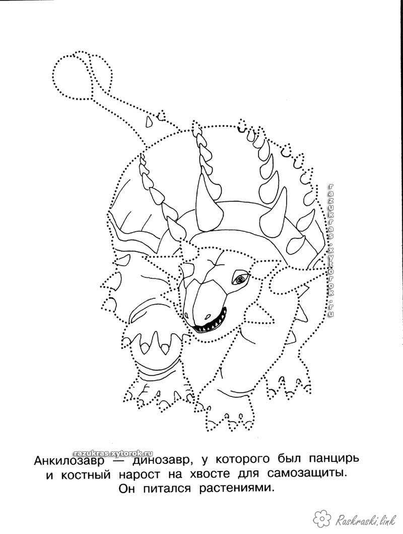Розмальовка для дітей "Анкилозавр". Раскраска Дитяча розфарбування, з'єднай розфарбуй анкілозавра завантажити бесплатно онлайн