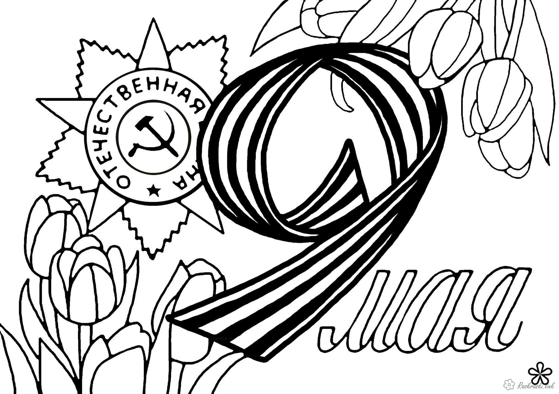 розфарбування 9 травня. Раскраска розмальовки до 9 травня день перемоги дитячі, розфарбування георгіївська стрічка до 9 травня, тюльпани завантажити бесплатно онлайн