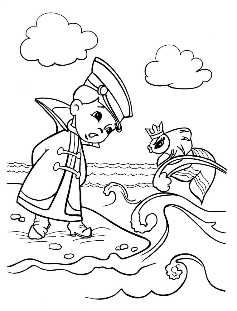 Розмальовки тридев'ятому Соетской мультфільм, вовка, тридев'яте царство, золота рибка, море