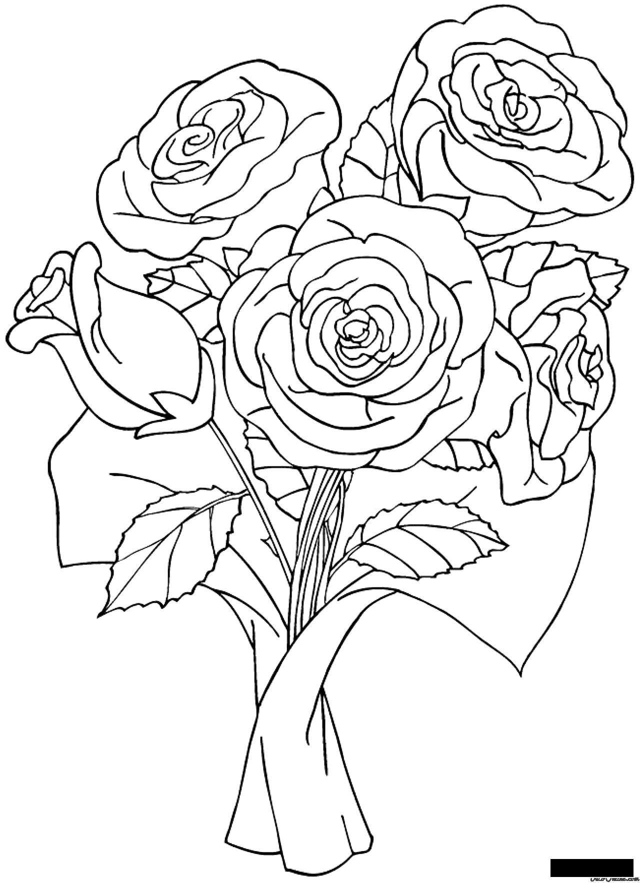 Букет троянд. Раскраска Квіти, троянди, букет завантажити бесплатно онлайн