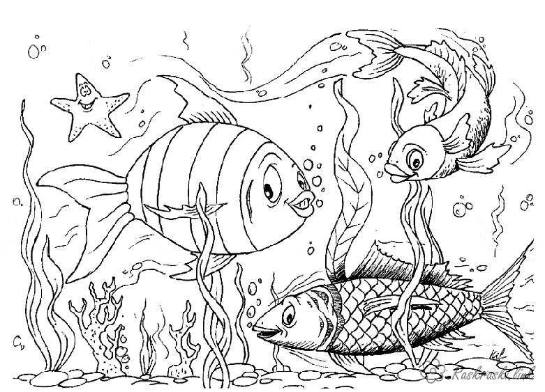 Розмальовка трьох рибки. Раскраска Рибки, водорості завантажити бесплатно онлайн