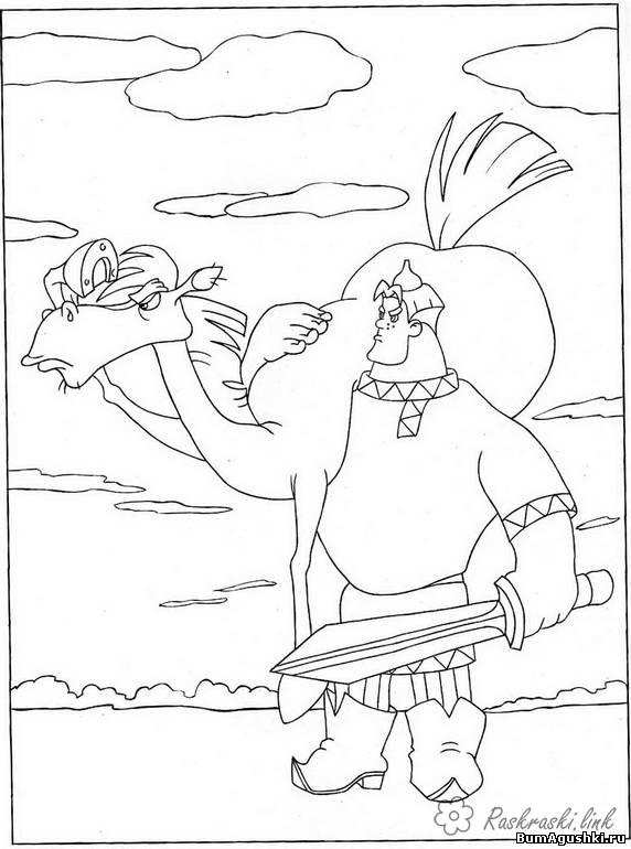 алеша несе коня юлия. Раскраска розмальовки, Альоша Попович і Тугарин Змій, юлій, кінь, сила завантажити бесплатно онлайн