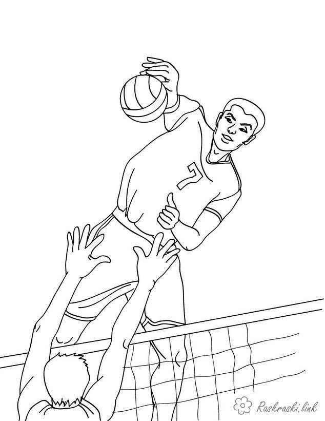 блок від удару м'ячем. Раскраска блокує удар, волейбол, м'яч, сітка завантажити бесплатно онлайн