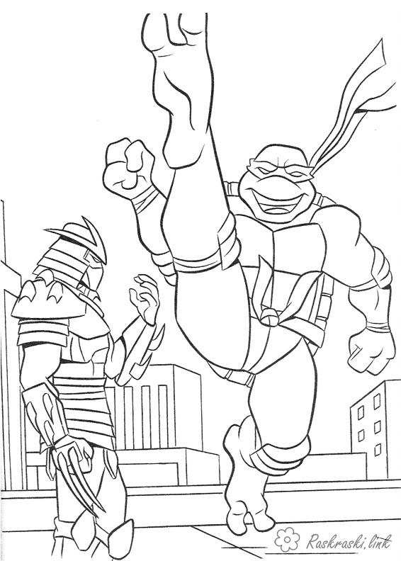 переможний удар ніндзя черепашки. Раскраска черепашки ніндзя, розмальовки, розмальовки хлопчикам, teenage mutant ninja turtles, удар ногою, шреддер завантажити бесплатно онлайн