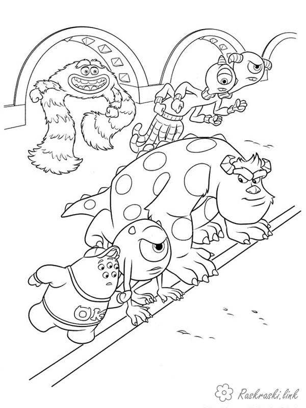 Монстри на змаганнях. Раскраска розмальовки мультфільми, розмальовки університет монстрів, монстри завантажити бесплатно онлайн