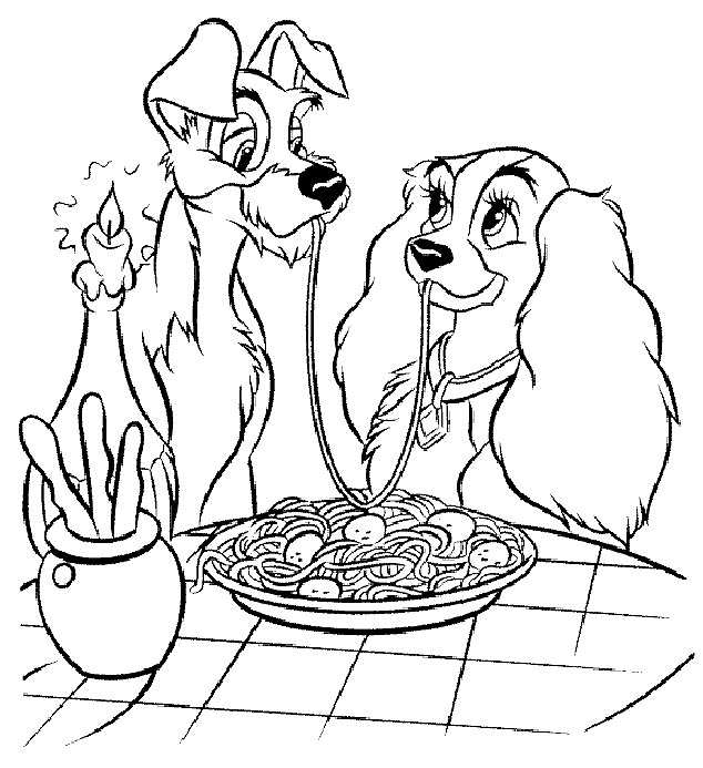 два собачки обідають. Раскраска два собачки, дисней, мультфільм завантажити бесплатно онлайн
