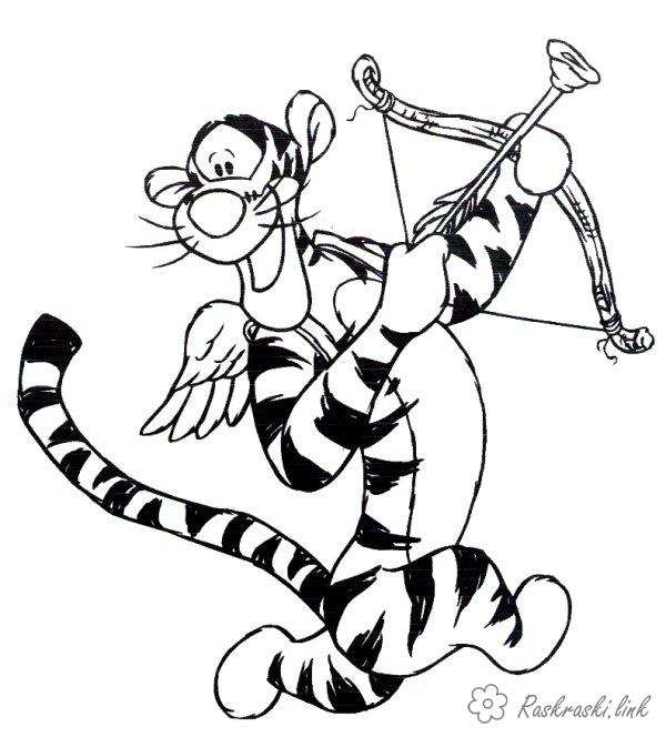 Тигр стріляє з лука. Раскраска Тигр, дисней, цибуля, стріла завантажити бесплатно онлайн