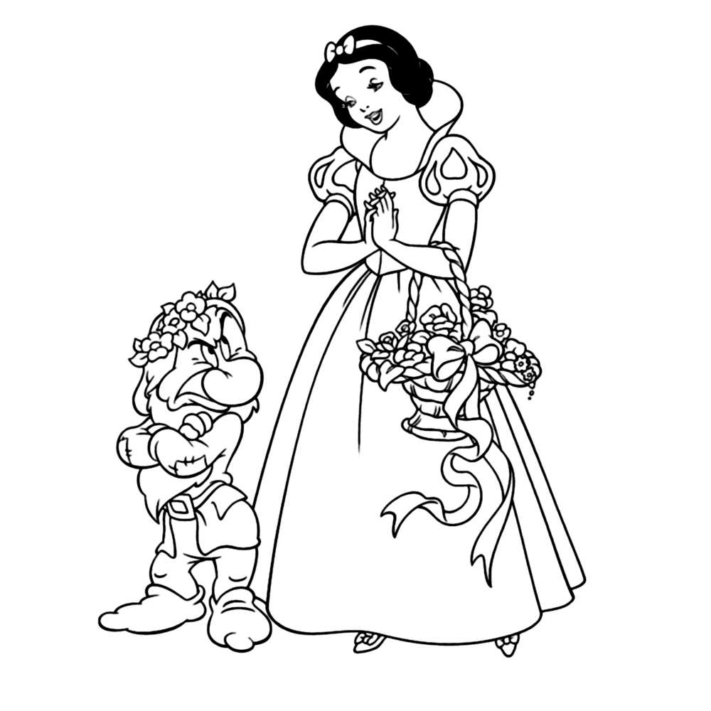 Білосніжка розмовляє з гномом. Раскраска Розмальовка Білосніжка і гном завантажити бесплатно онлайн
