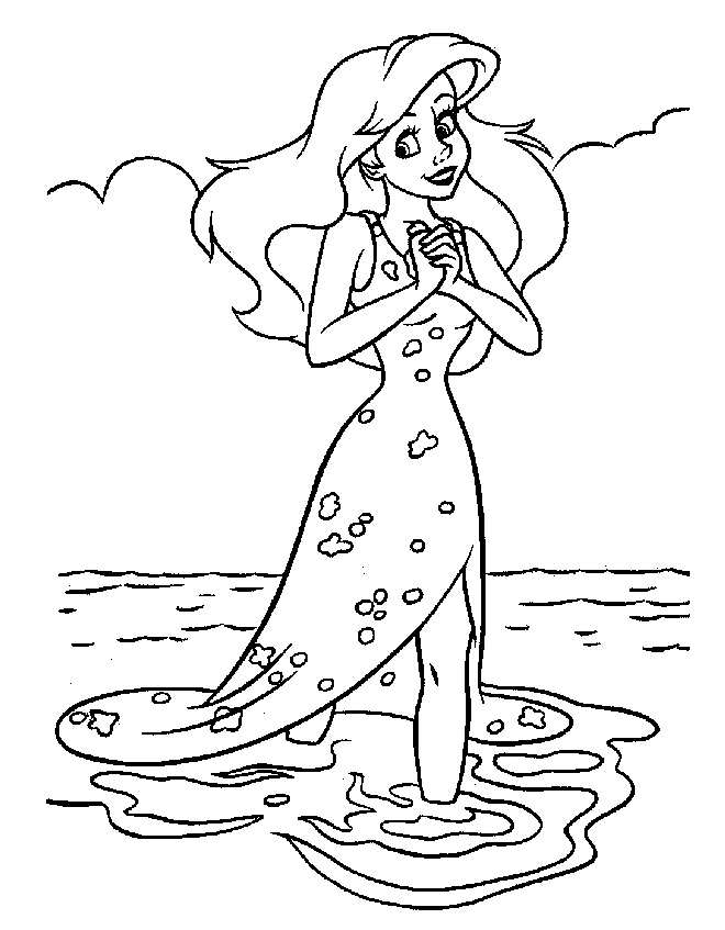 Розмальовка Аріель у води. Раскраска розфарбування для дітей, Аріель, Уолт Дісней завантажити бесплатно онлайн