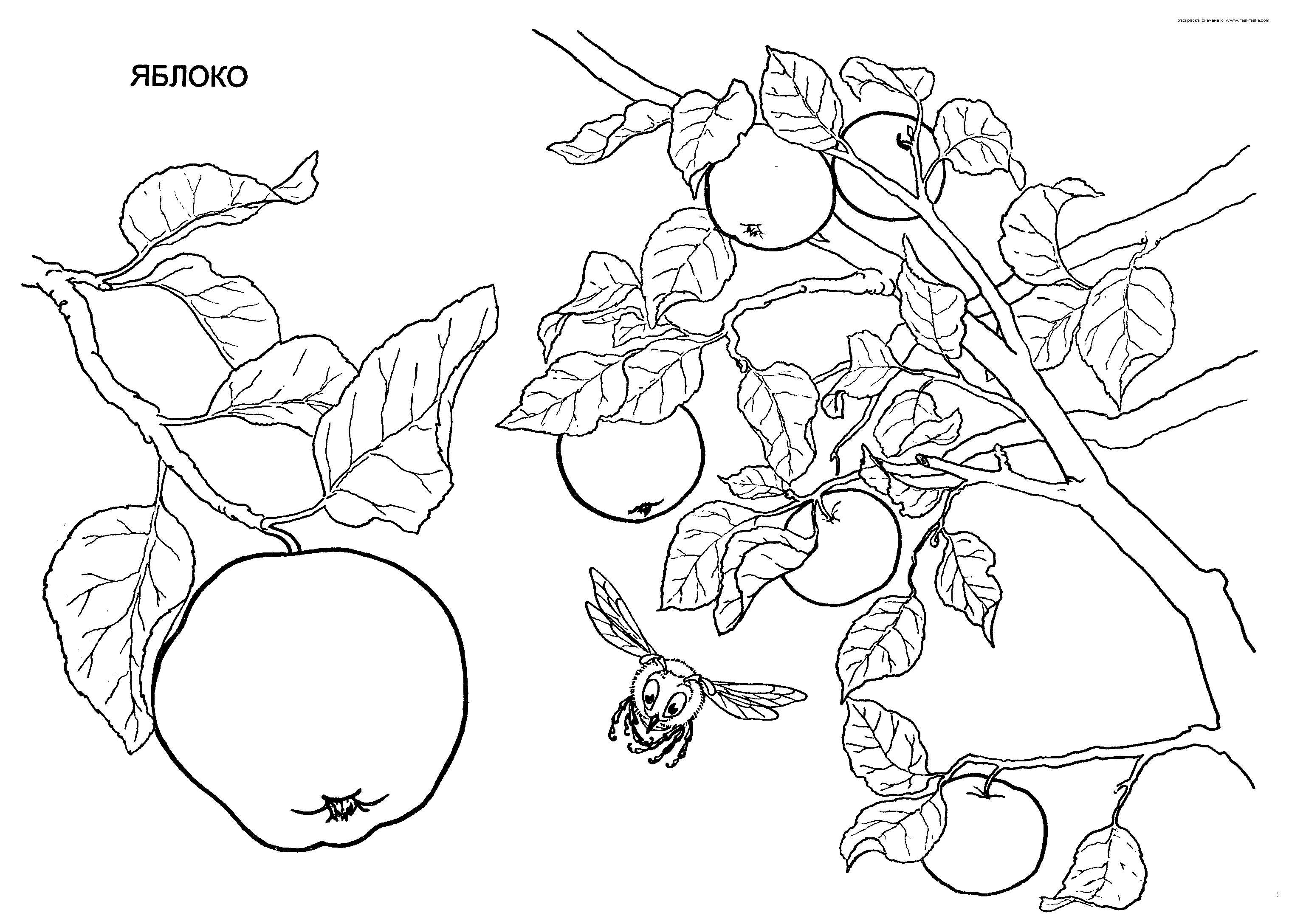 яблука на яблуні, розфарбування. Раскраска Дитяча розфарбування, яблука, яблуня, фрукт завантажити бесплатно онлайн