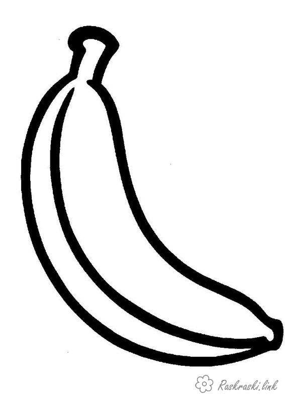 Розмальовка банан. Раскраска Проста розфарбування, фрукт, банан завантажити бесплатно онлайн