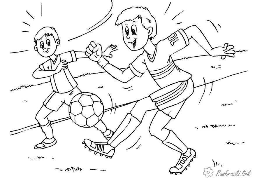хлопчаки грають у футбол. Раскраска футбол, спорт, розмальовки завантажити бесплатно онлайн