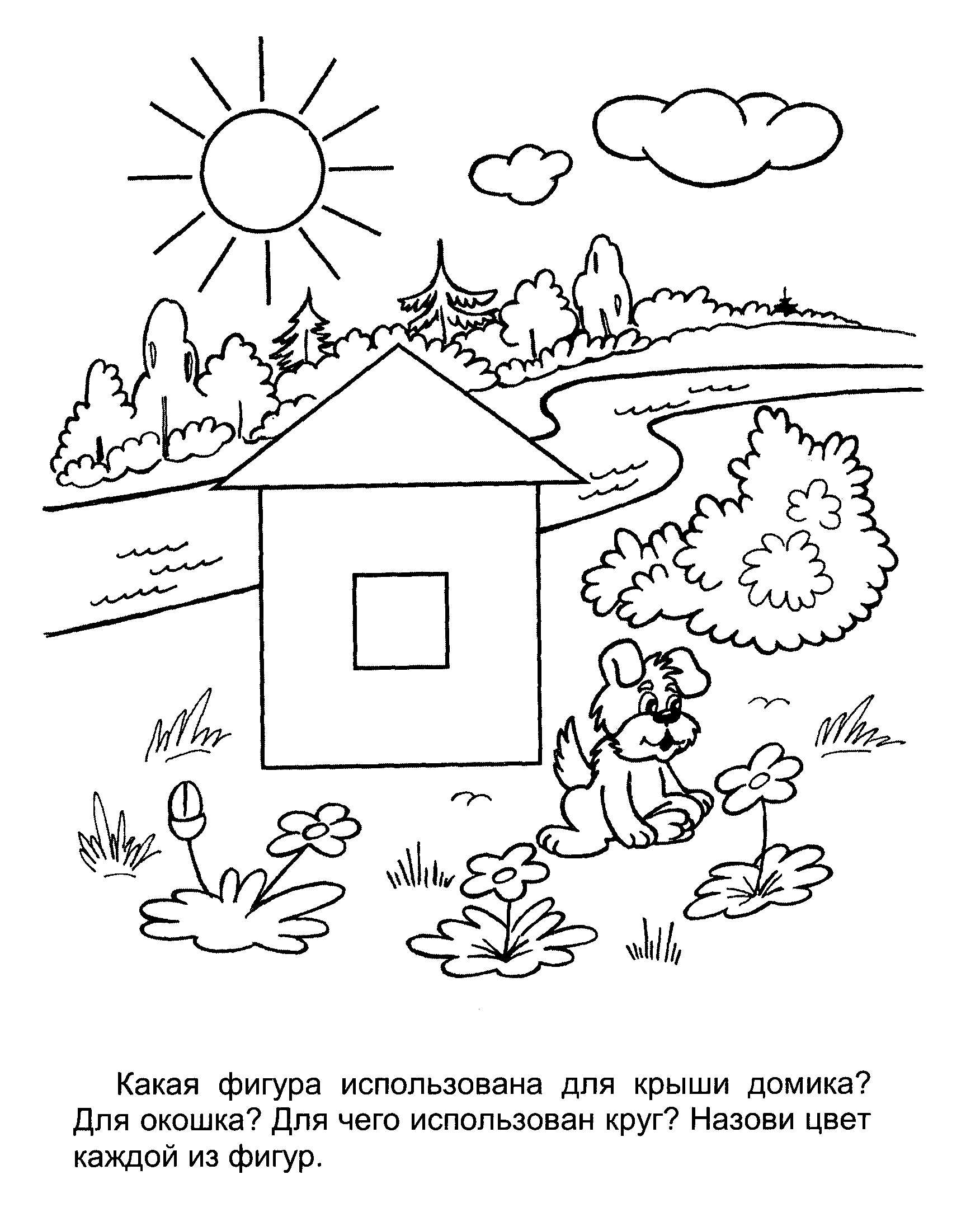 галявина будинок ліс сонце хмара щеня. Раскраска галявина будинок ліс сонце хмара щеня завантажити бесплатно онлайн