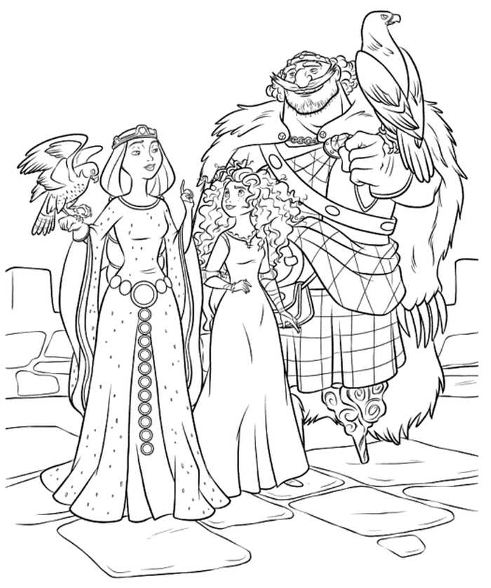 Меріда з мамою і татом. Раскраска розмальовки хоробра серцем, розмальовки мультфільми, чоловік, жінка, дочка, тато, мама, сім'я, король, королева, принцеса завантажити бесплатно онлайн