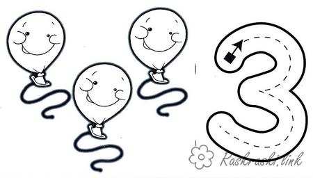 Цифра 3. Раскраска зо три, 3, кульки, розфарбувати завантажити бесплатно онлайн