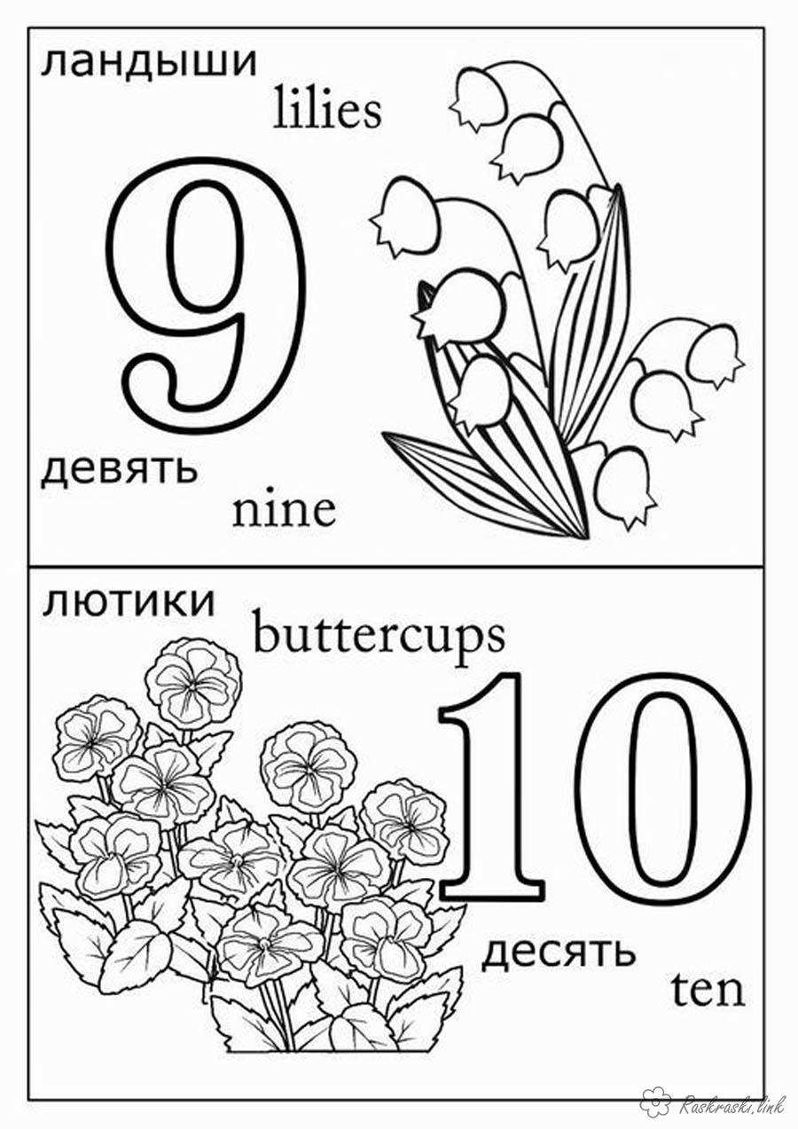 Вчимо цифри дев`ять десять. Раскраска Конвалії лютики розфарбування вчимо цифри дев`ять десять завантажити бесплатно онлайн