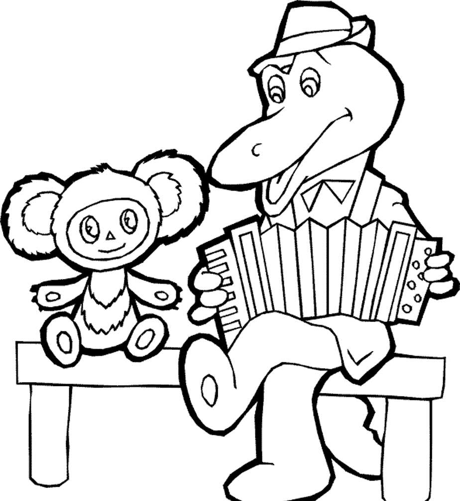 Чебурашка. Раскраска Радянський мультфільм, чебурашка, крокодил гена, лавочка, гармошка завантажити бесплатно онлайн