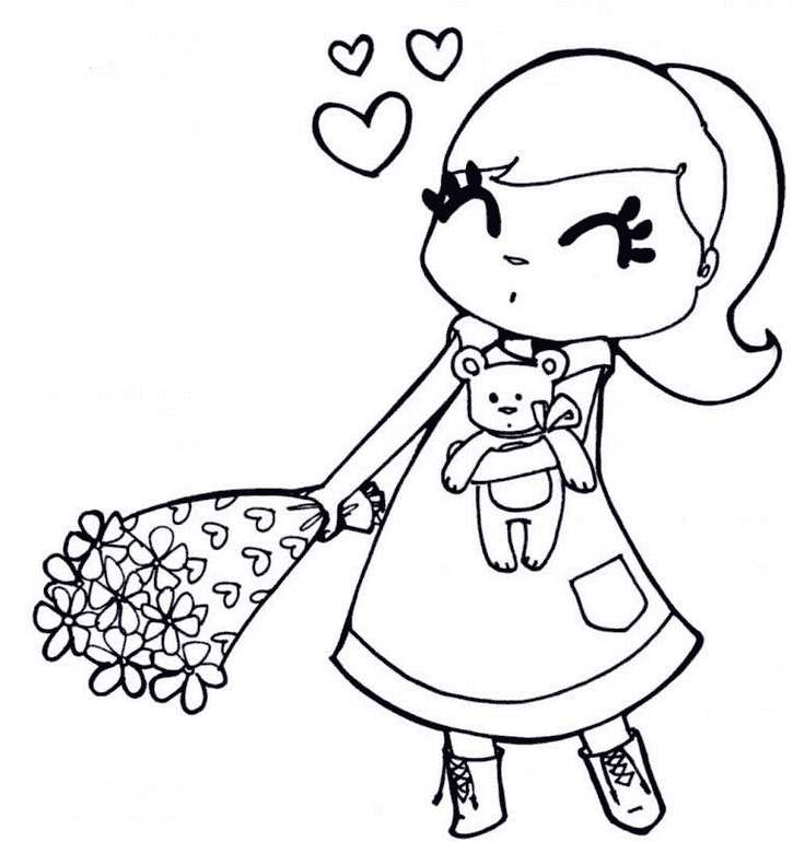 Дівчинка з букетом квітів. Раскраска Свято 1 червня День захисту дітей дівчинка букет квіти завантажити бесплатно онлайн