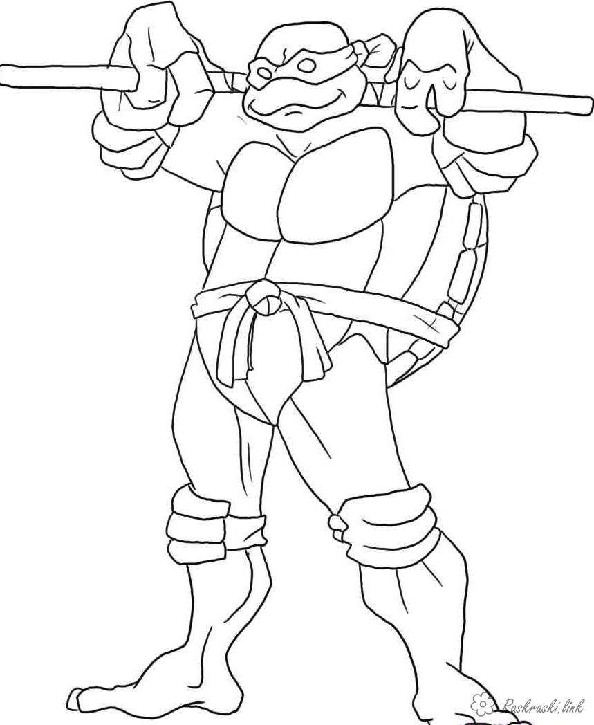 черепашка ніндзя вправляється. Раскраска черепашки ніндзя, розмальовки, розмальовки хлопчикам, teenage mutant ninja turtles, Донателло завантажити бесплатно онлайн