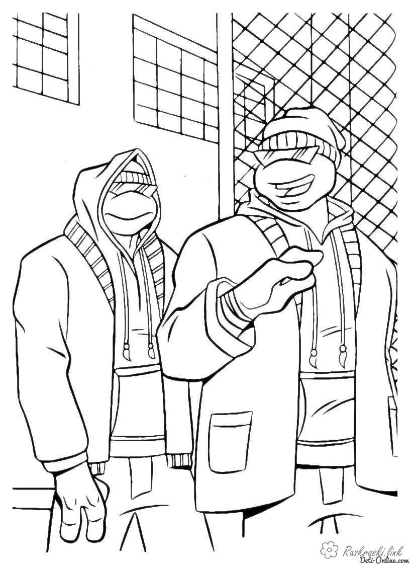 два черепашки ніндзя в одязі. Раскраска черепашки ніндзя, розмальовки, розмальовки хлопчикам, teenage mutant ninja turtles завантажити бесплатно онлайн