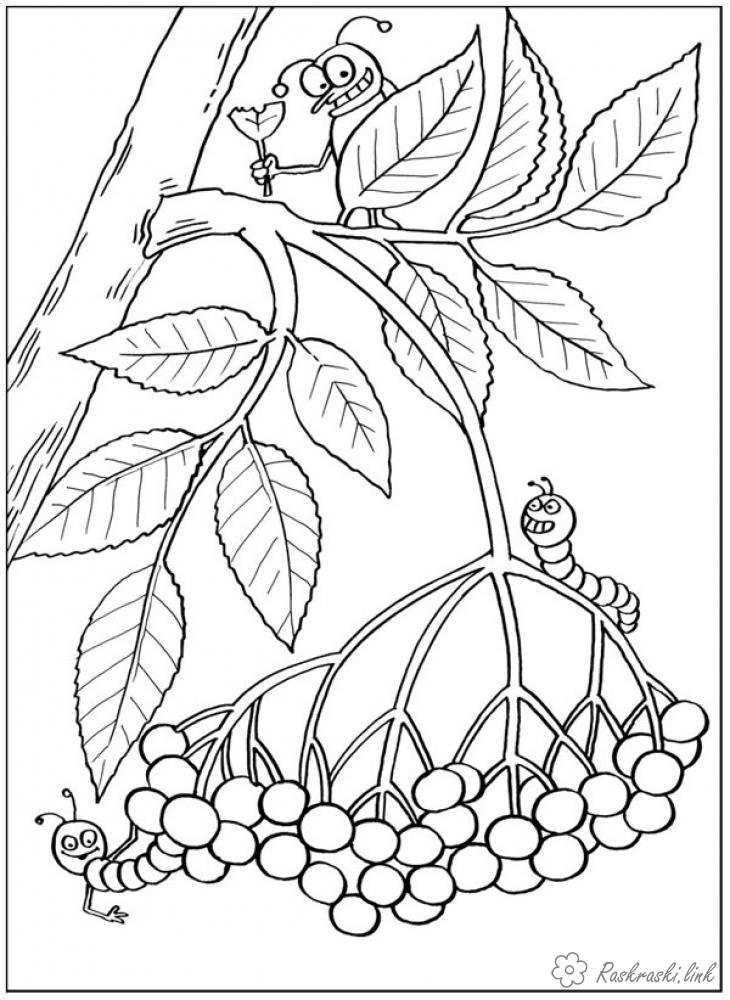 Ягоди. Раскраска розмальовки рослини, природа, ягоди, листя завантажити бесплатно онлайн