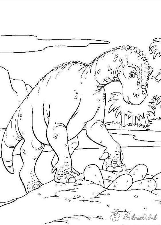 Розмальовка динозавр і кладка яица. Раскраска Рептилії, динозавр, яйця, кладка завантажити бесплатно онлайн