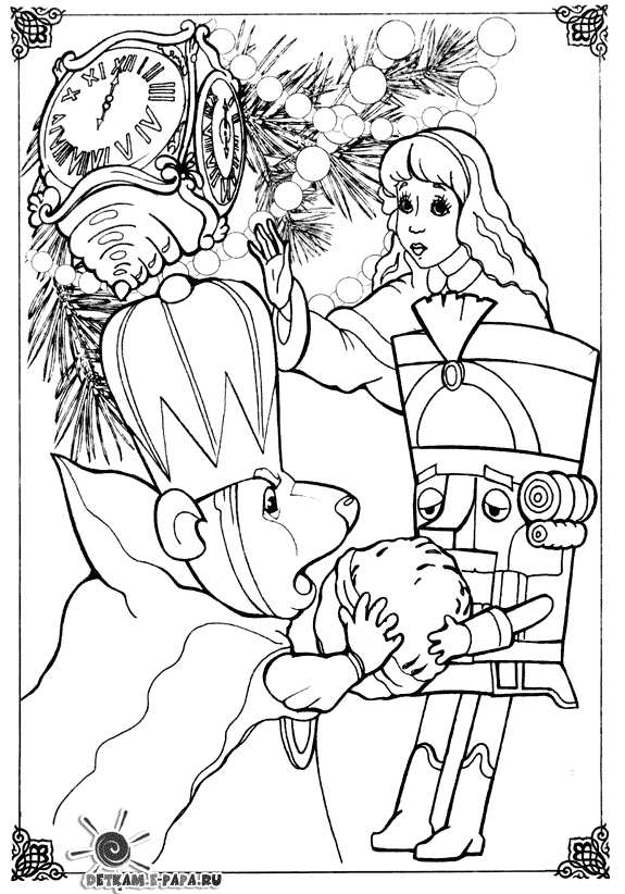 Лускунчик. Раскраска Радянський мультфільм, лускунчик, дівчинка, ялинка, горіх, мишачий король завантажити бесплатно онлайн