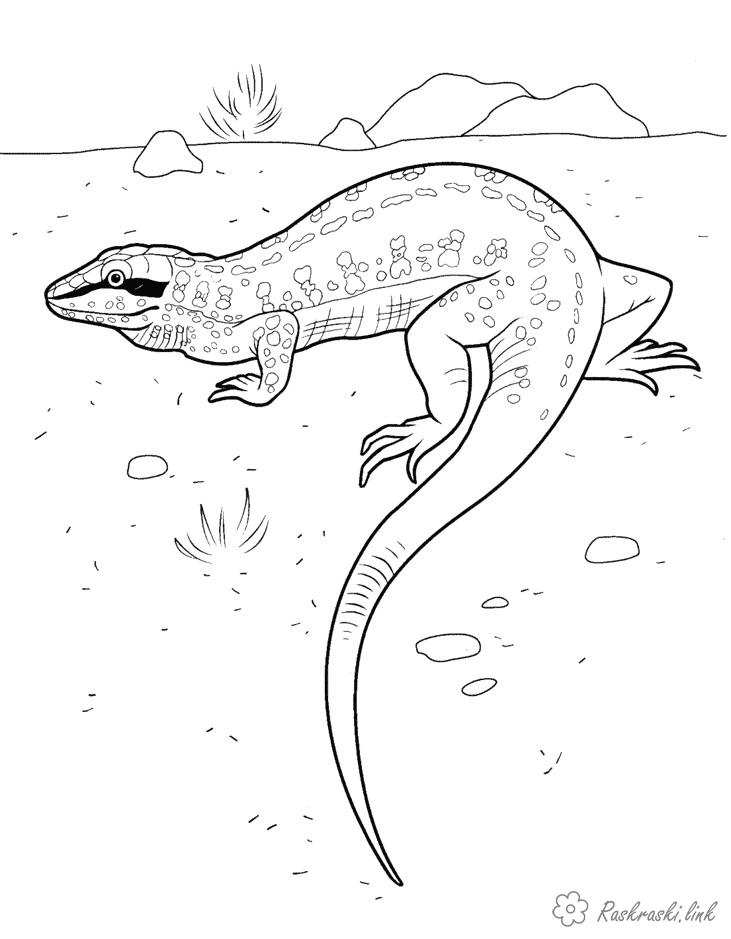 Розмальовка ящірка на піску. Раскраска Рептилії, ящірка завантажити бесплатно онлайн