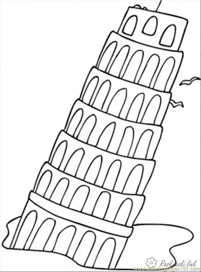 Пізанська вежа. Раскраска розмальовки для дітей, подорожі, Європа, будівля завантажити бесплатно онлайн
