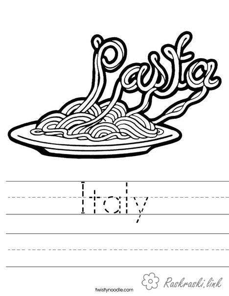 Спагеті. Раскраска розмальовки для дітей, подорожі, Європа, їжа завантажити бесплатно онлайн
