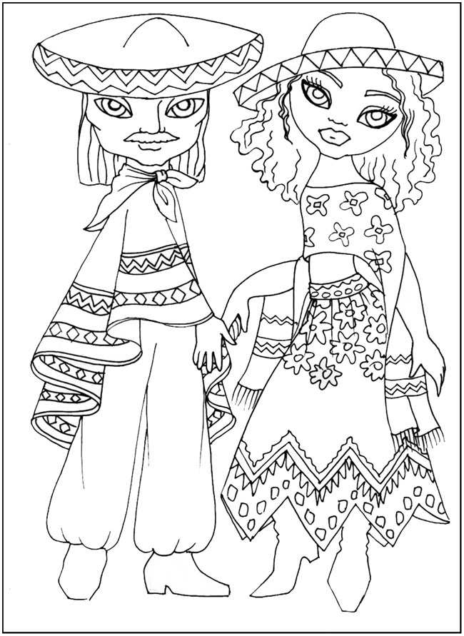 Мексиканці. Раскраска Розмальовки свята, розмальовки 1 травня, День єдності народів Казахстану, чоловік, жінка завантажити бесплатно онлайн