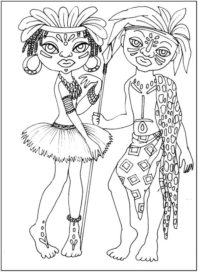 Папуасы. Раскраска Розмальовки свята, розмальовки 1 травня, День єдності народів Казахстану, дівчинка, хлопчик завантажити бесплатно онлайн