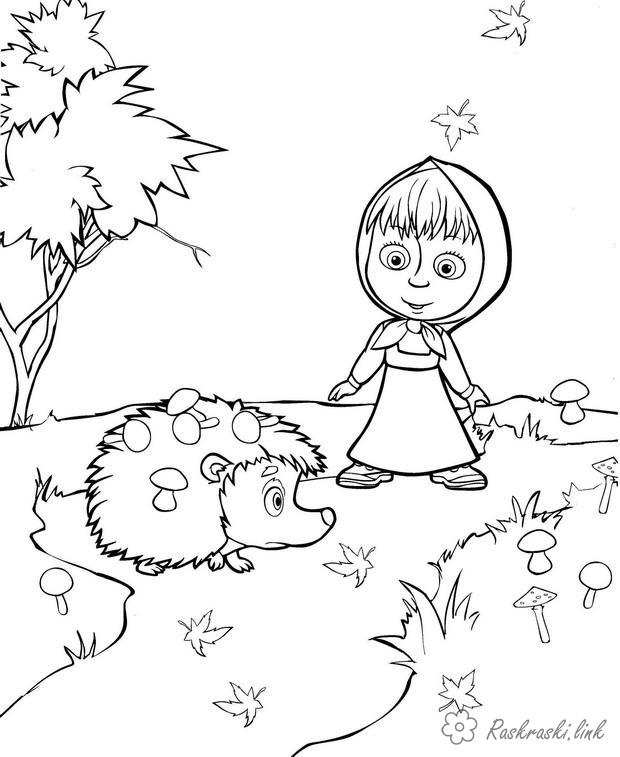 маша і їжачок в лісі. Раскраска розфарбування маша і ведмідь, їжачок, ліс, природа завантажити бесплатно онлайн
