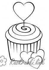 розфарбування тістечко. Раскраска розфарбування тістечко з сердечками, солодощі завантажити бесплатно онлайн