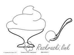 розфарбування морозиво і ложка. Раскраска розфарбування морозиво, морозиво в тарілці, ложка завантажити бесплатно онлайн