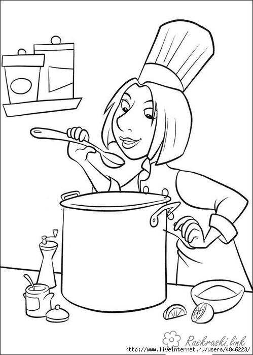 дівчина кухар пробує їжу. Раскраска дівчина кухар пробує їжу, розмальовки рататуй завантажити бесплатно онлайн
