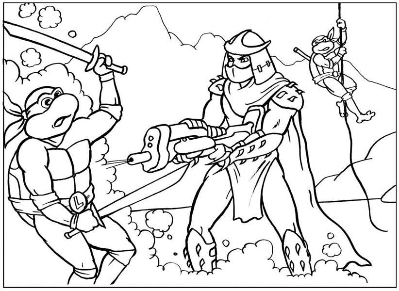 черепашки б'ються з супротивником. Раскраска черепашки ніндзя, розмальовки, розмальовки хлопчикам, teenage mutant ninja turtles, леонардо завантажити бесплатно онлайн