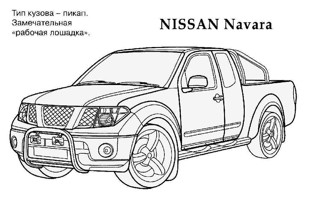 Nissan Navara . Раскраска Nissan Navara розфарбування позашляховик завантажити бесплатно онлайн